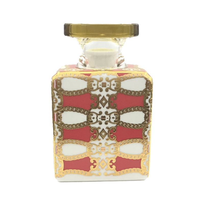 La diffusion se fait par l'imprégnation d'une mèche en coton, ornée d'une fleur décorative.