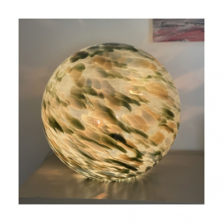 Lampe boule 38 cm de diamètre, en verre brun/vert.