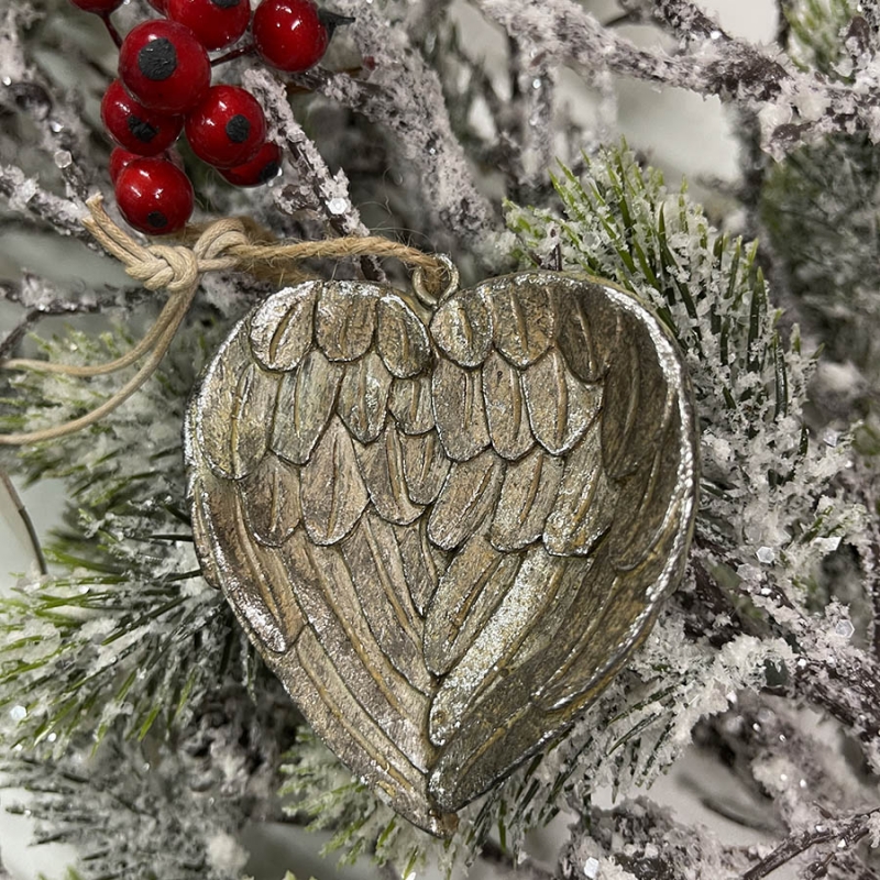 Pour décorer votre sapin de Noël, sujet "Aile d'ange" de couleur argenté patiné.