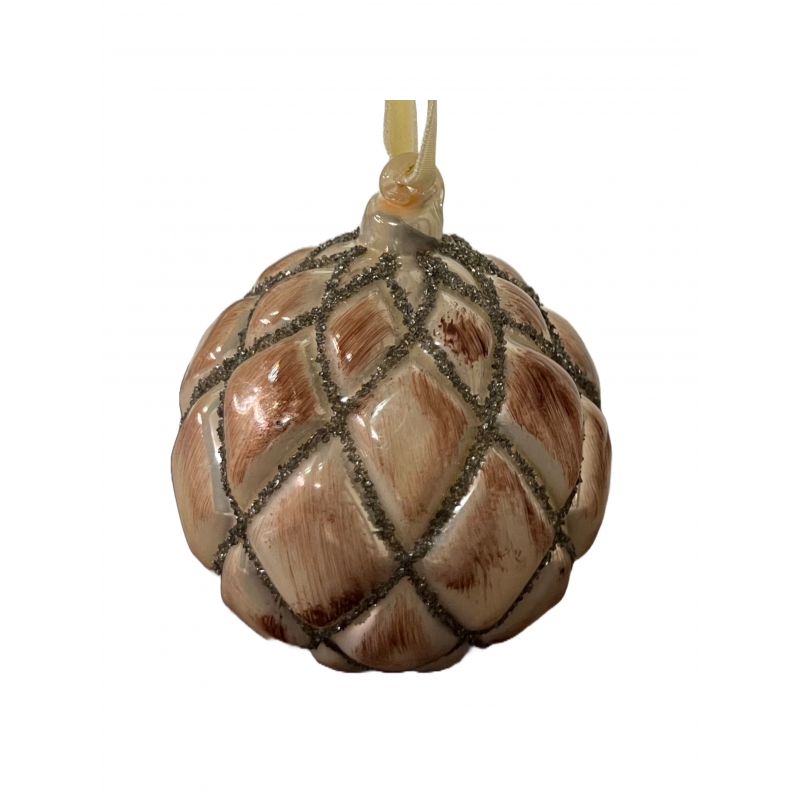 Boule de Noël beige et brun patiné en verre 8 cm