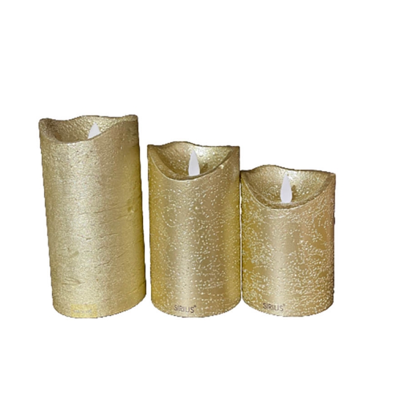 Bougie dorée led avec flamme oscillante. Fonctionne avec 2 batteries AA (non incluses).