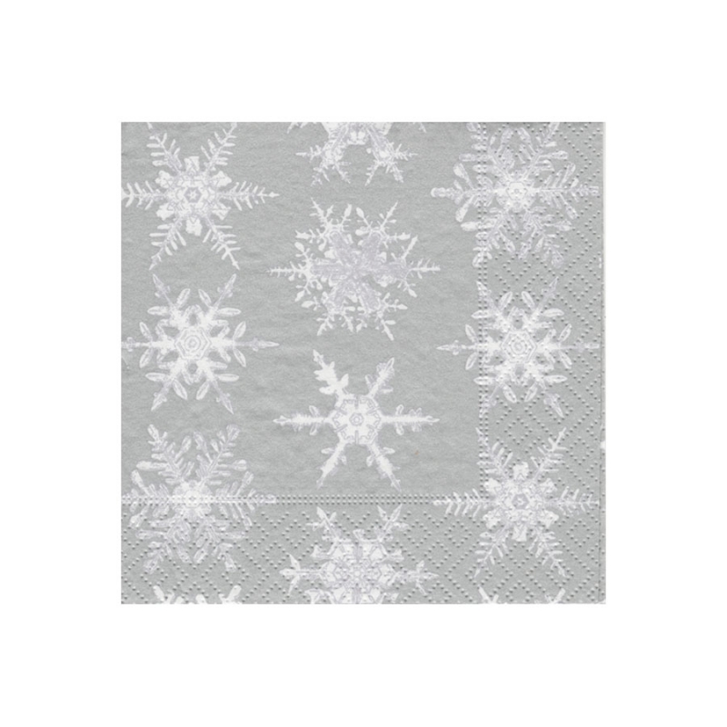 Serviettes pour Noël et fête de fin d'année. Serviettes papier "Caspari" modèle "Sikver Falling Snow"