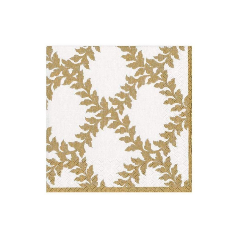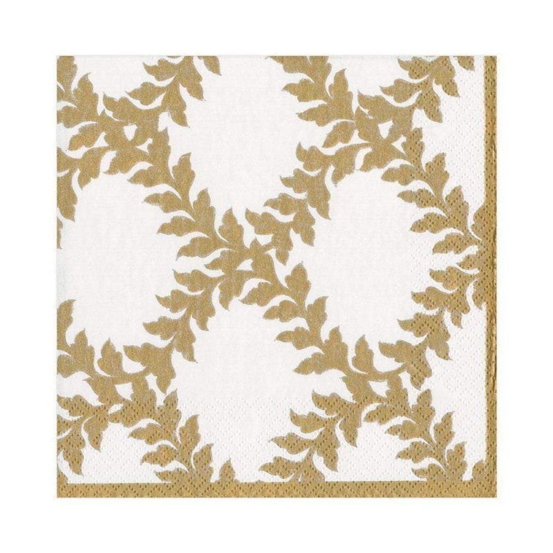 Serviettes en papier "Caspari" - cocktail - "Acanthus Treillis ivoire"