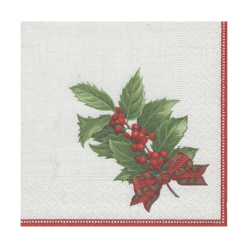 Serviettes en papier "Caspari" - cocktail - "Holly linen ivory"