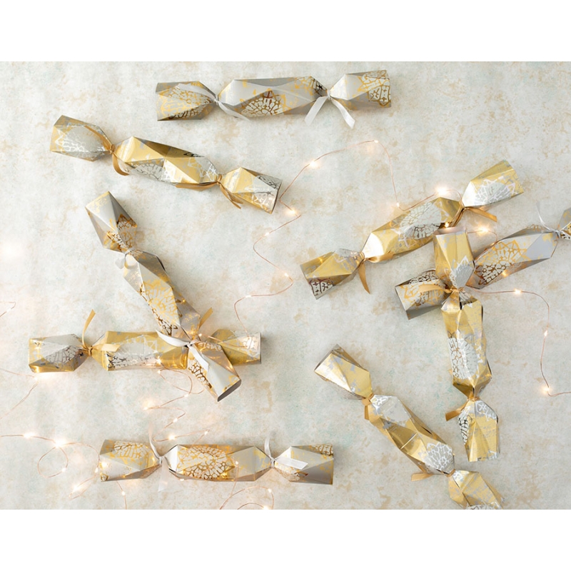 Boite de 6 "Crackers" de Noël "Caspari" - Platinium/Gold Block