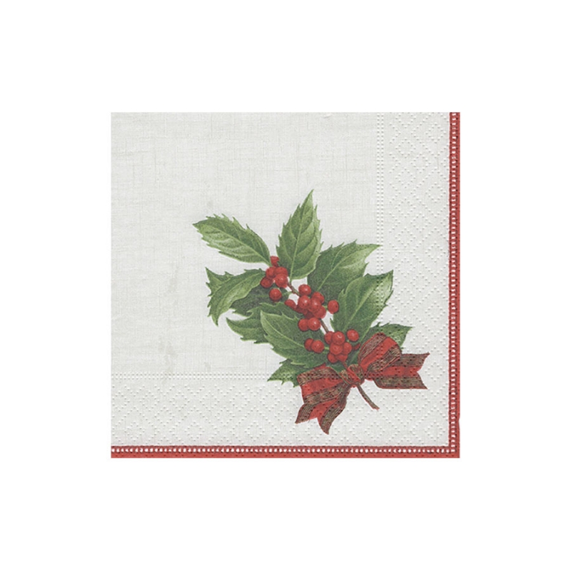 Serviettes en papier "Caspari" - lunch - "Holly linen ivory"